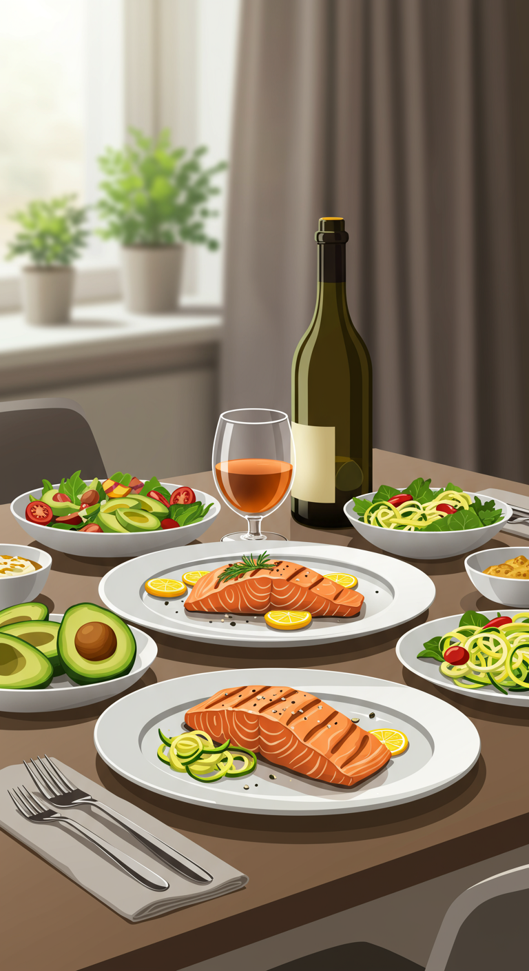 - 저녁: 연어 스테이크 + 구운 야채 (브로콜리, 파프리카 등) + 두부구이