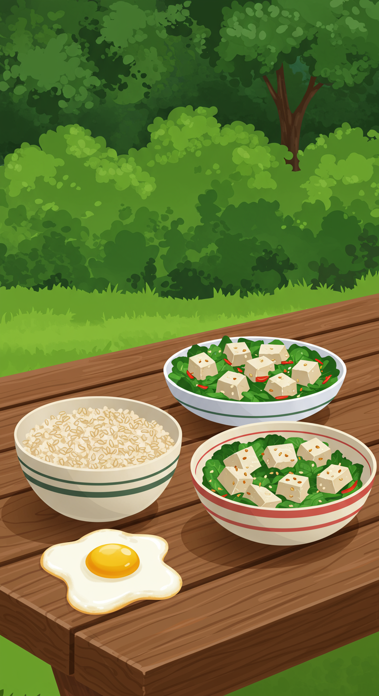 - 점심: 두부김치 + 잡곡밥 소량 + 나물 반찬