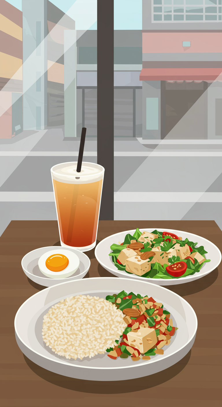 - 점심: 샐러드볼 (현미 + 채소 + 단백질)
